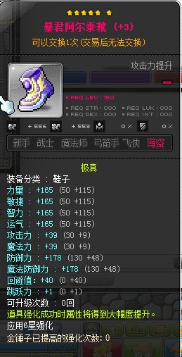 150级暴君阿尔泰靴海盗尖兵靴子 165全属性 39G 顶级装备(包剪)这价格在任何平台都买不到,着急用钱低价甩了